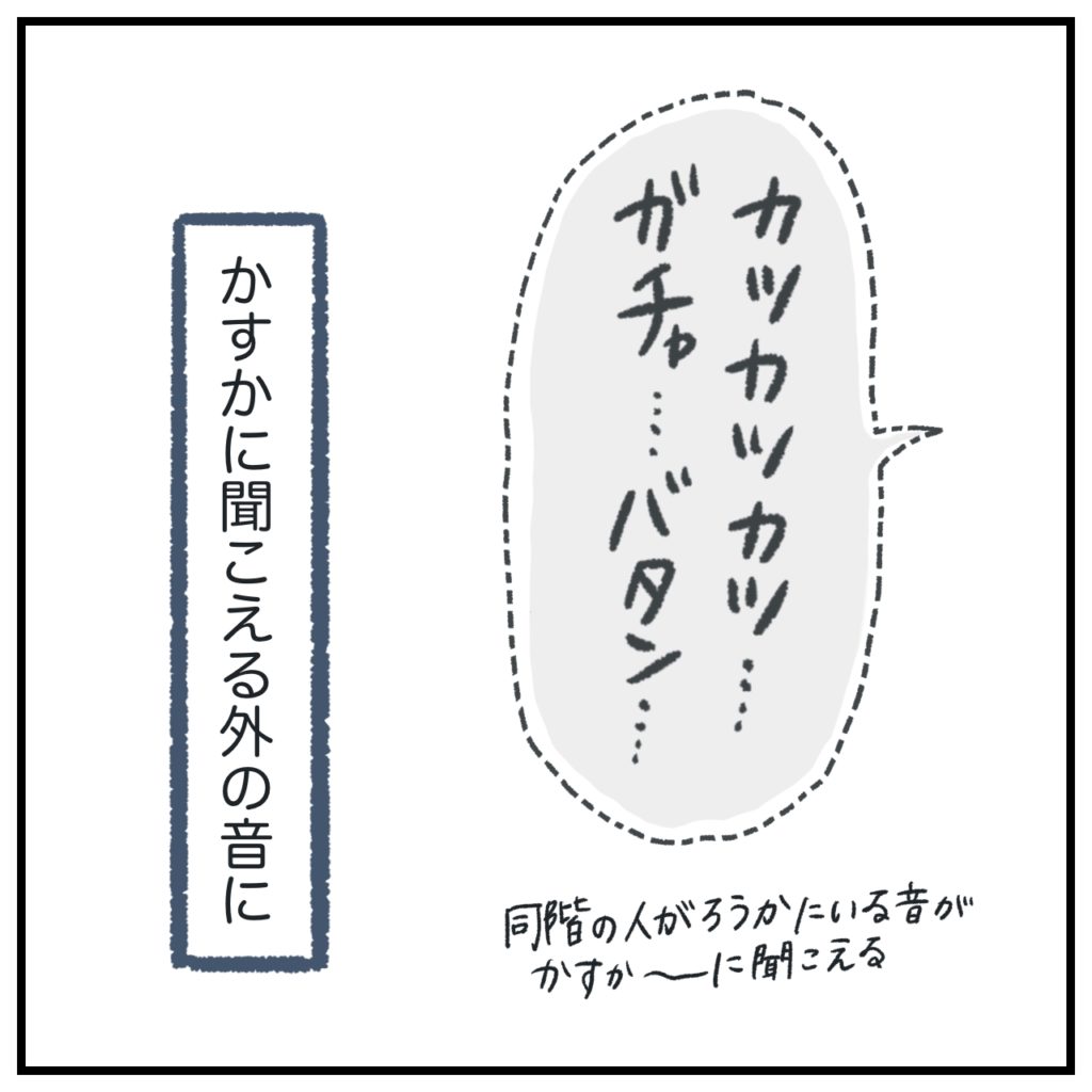 かすかな音にいちいち過剰反応していました。同階の人が廊下に出る音とか、外の車の音とか。とにかく日常の生活音全部。身体は緊張して警戒を続けていたんだと思います。