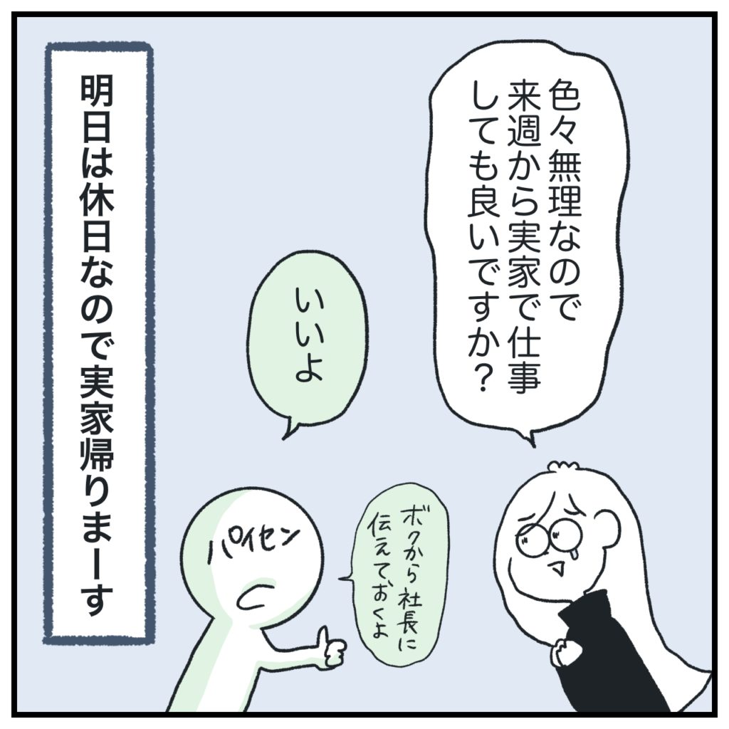 幸いにも次の日は休日だったので、上司に相談して早速実家に帰ることにしました。