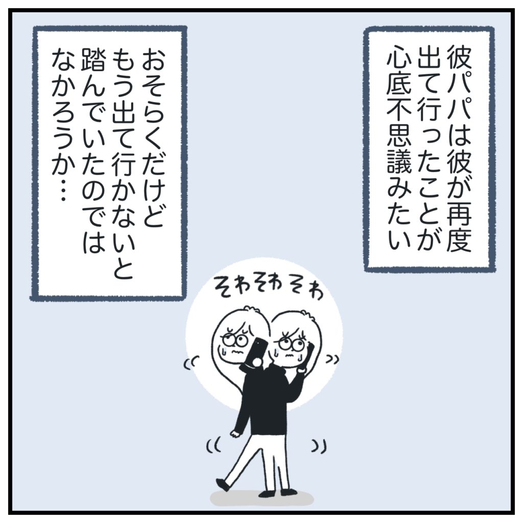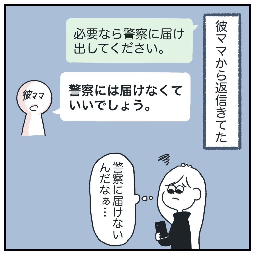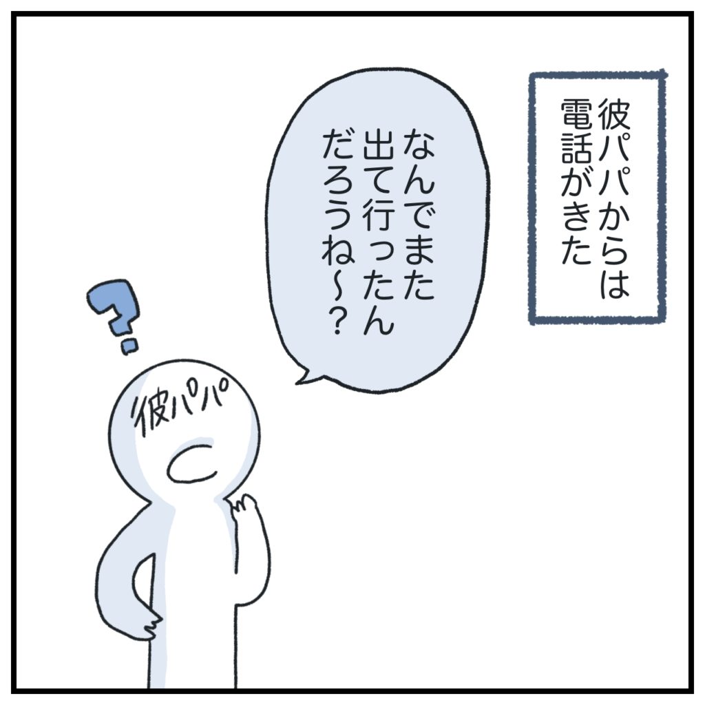彼ママも彼パパも「警察には連絡しなくていいでしょう」って感じ。ご両親にとっては「いつものこと」の延長上だったんじゃないかな?