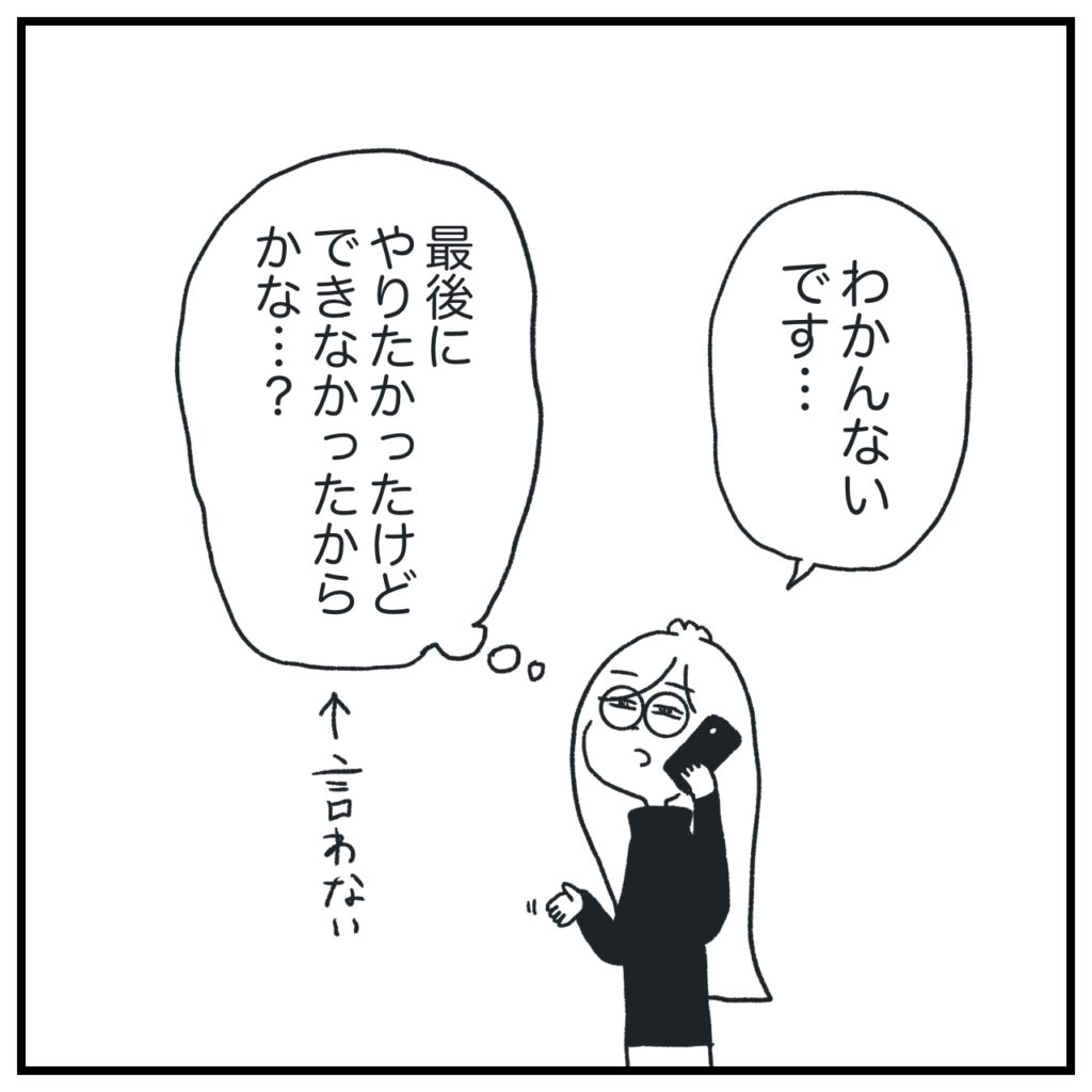 彼は彼で自分の考えや信念、価値観に沿って行動してる。私もそうだし、おそらくご両親も各々がそうだと思う。それらが少しずつ、うまい具合にすれ違ってズレていたんじゃないかな〜と思います。ご両親には彼のペースを見守る余裕があったけれど、私にはそんな余裕は残ってなかった…とかも含めて。