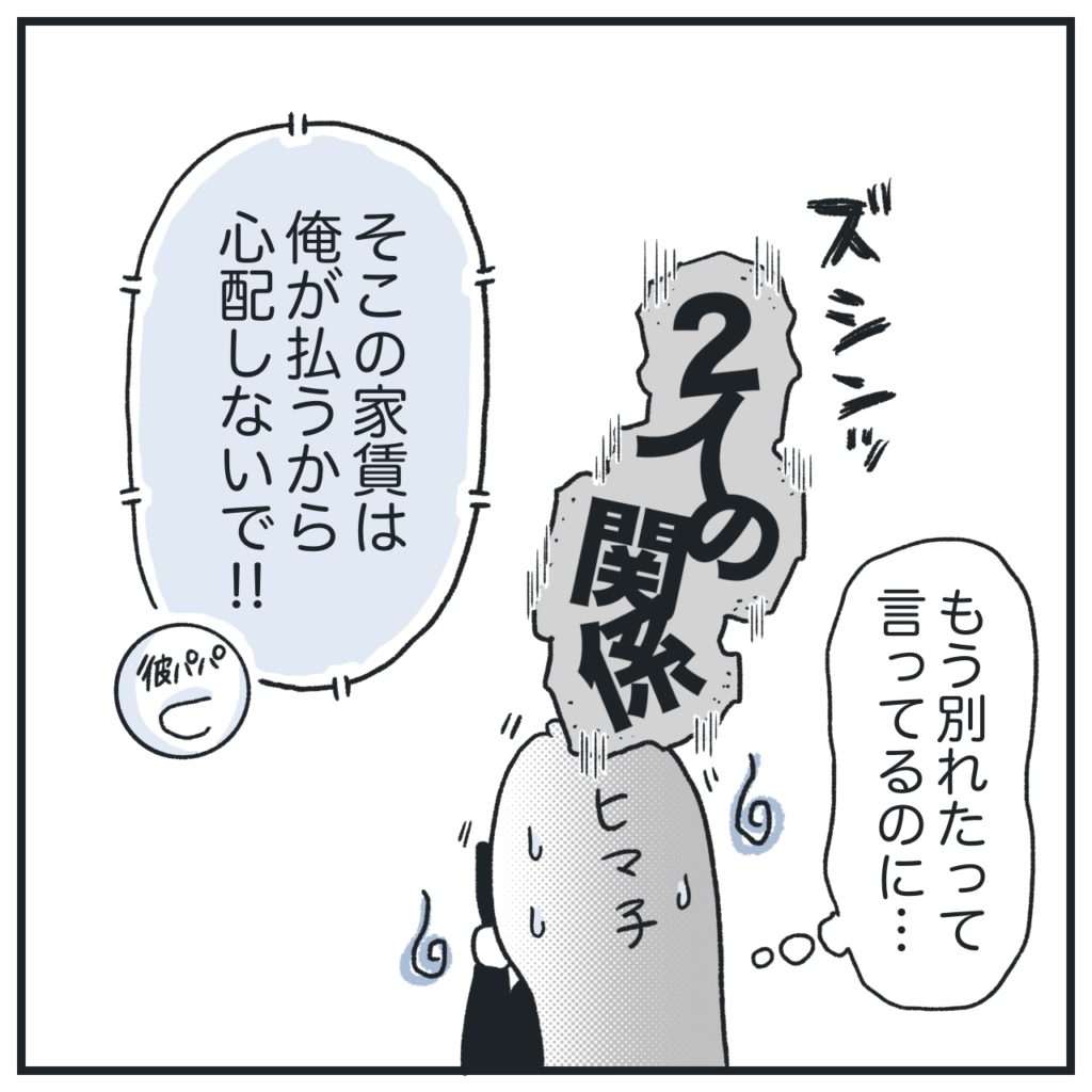 けどさ、彼パパも彼ママもいまだに「2人の関係には手出しできない」というスタンスで困惑しました。もう別れたのにな?2人の関係はまだ続いてるの?