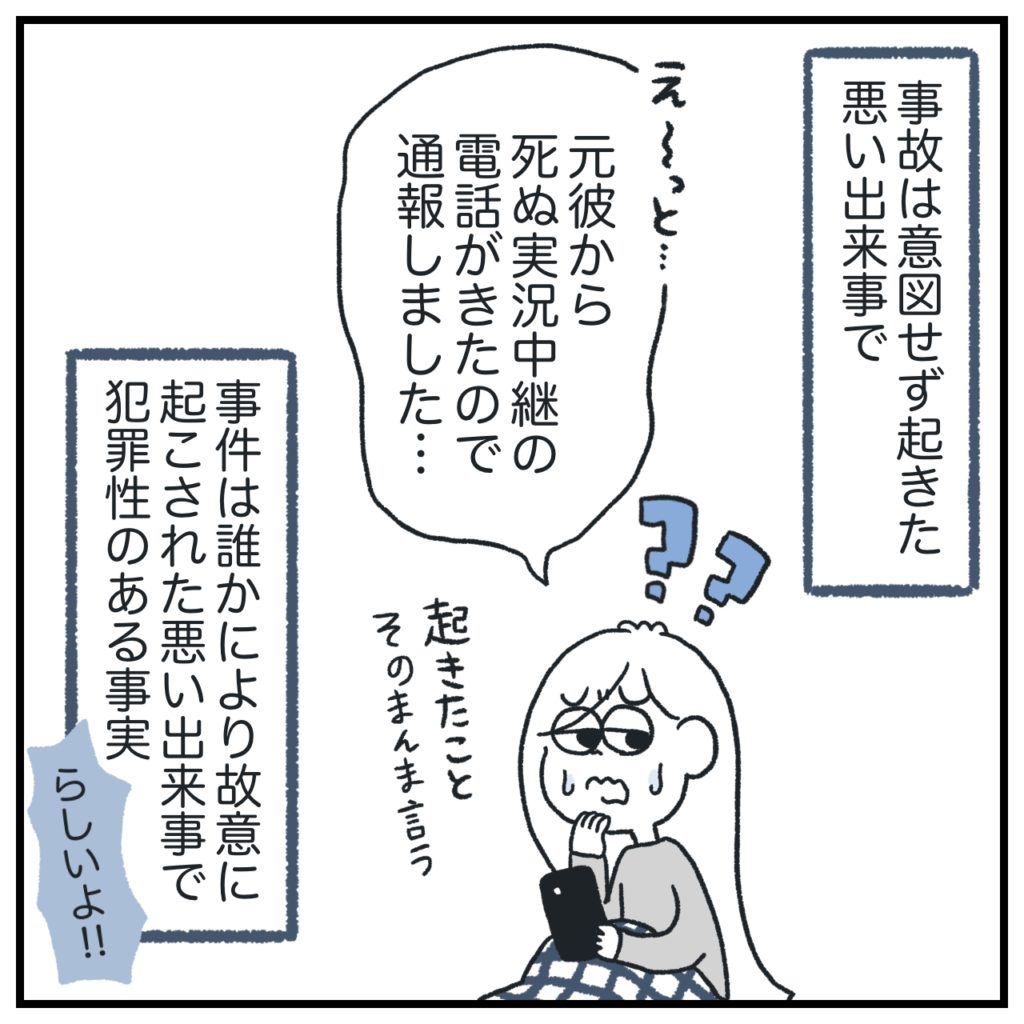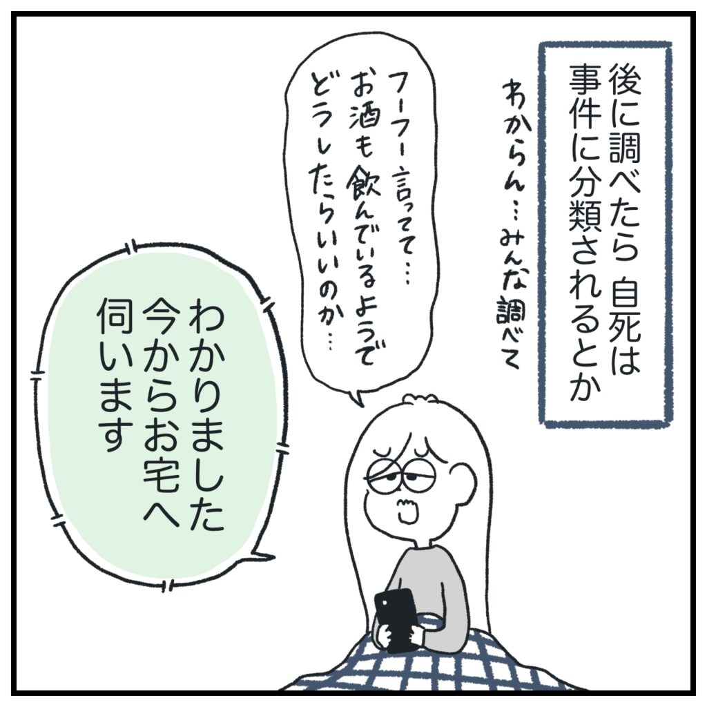ドラマとかでよく聞く「事件ですか?事故ですか?」と本当に聞かれて「おお!」となりました。