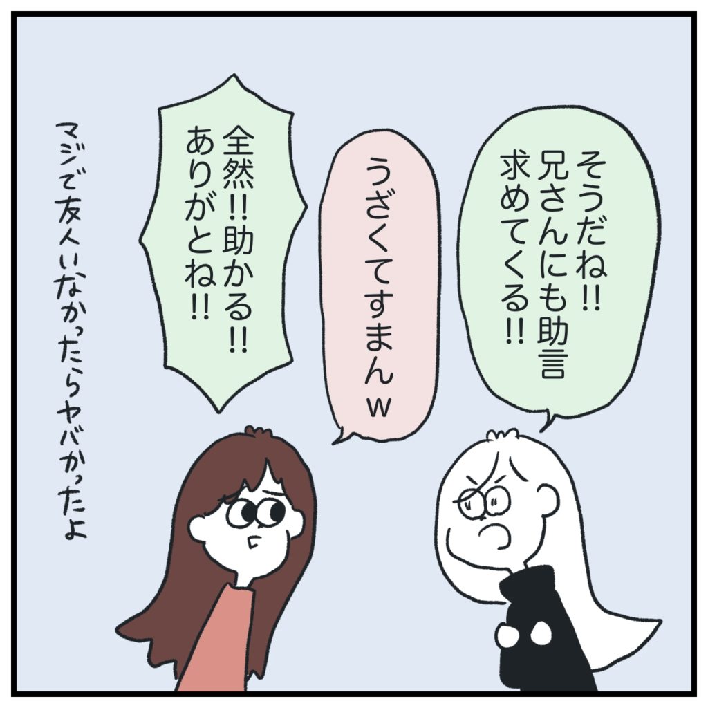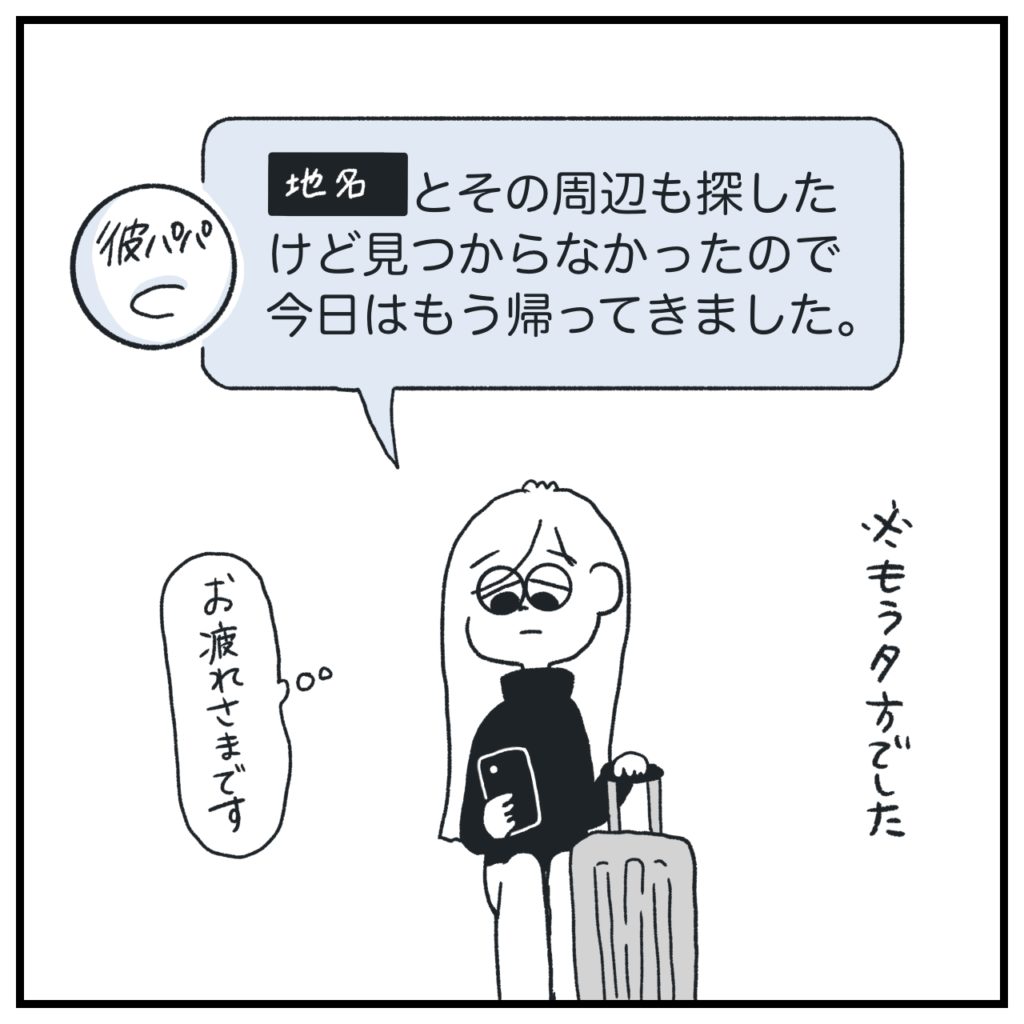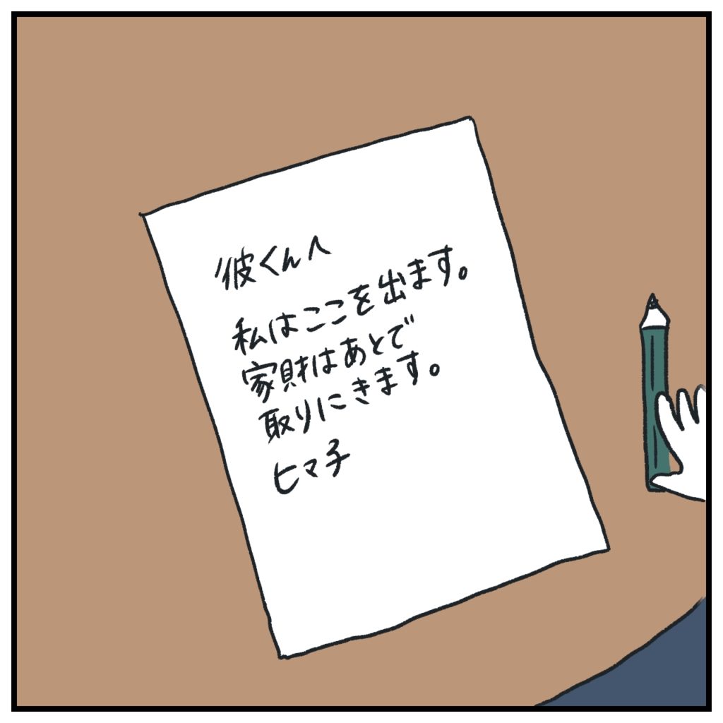 「一生一緒にいよう!」と自分の中で1度は決心していたので、自分のことも裏切ったような感覚でした。変なタイミングで離脱してしまったな〜という罪悪感というか。結局私は逃げるのか〜って。親御さんは彼捜索に乗り出しているのに…とか。