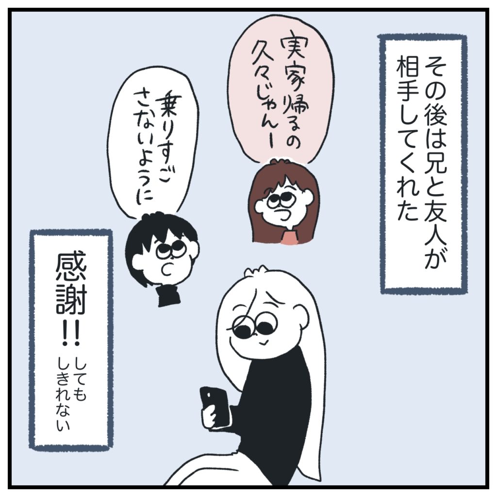 帰路中、友人と兄もチャットしてくれていました。本当に本当にずっとありがとう…しか出てこないです。