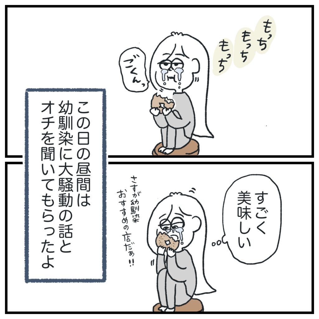 幼馴染は全部聞いてくれたよ。美味しいベーグル屋も教えてくれたし最高だね。今でも元彼との件の話はよくする。私のこの活動?を、ずっと見守ってくれている1人です。チームヒマ子!ありがたい。