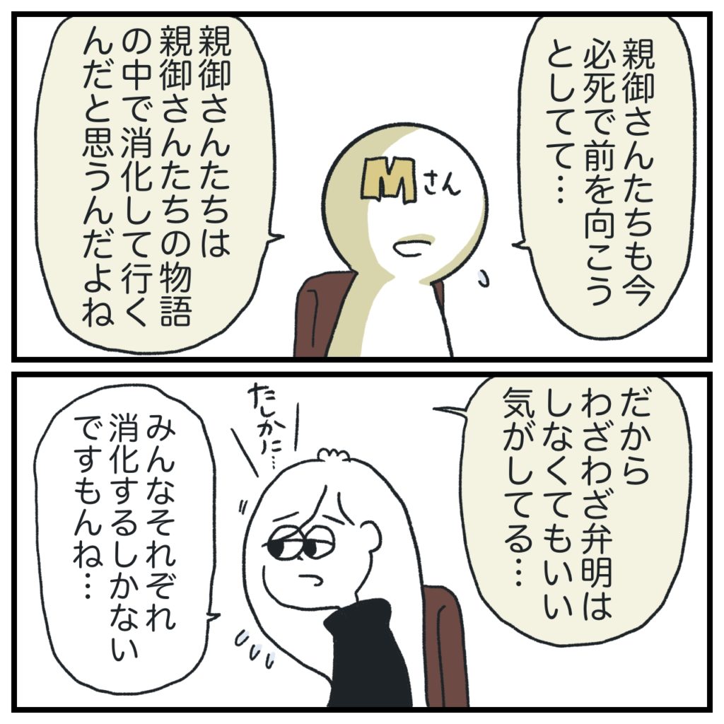 親御さんの中で物語が変化してるのとかね。まあ彼がちゃんと伝えないからいけないんだよ。親御さんもだけど。