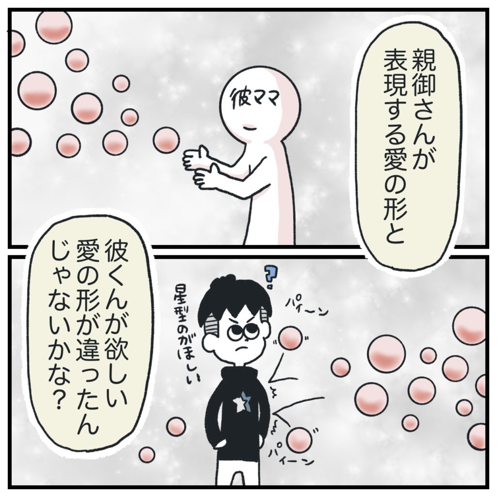 あとは彼が求めていた愛情の形と、親御さんが与えていた愛情の形が違う話とか。そうなんだよ〜!