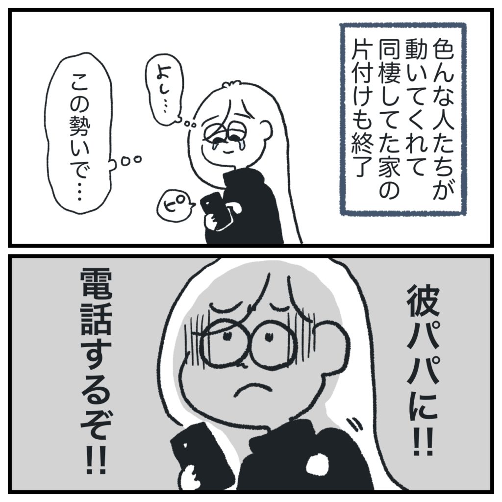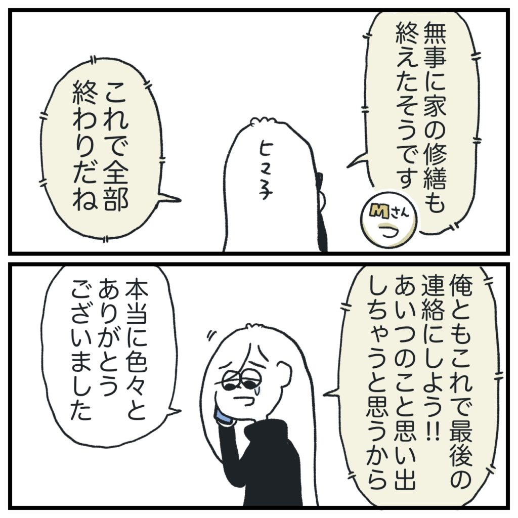けじめとして色々のお礼を伝えようと思って。電話するかしないかはギリギリまで悩みました。家の件が片付いたら、その時の自分の気分で決めようと思った。