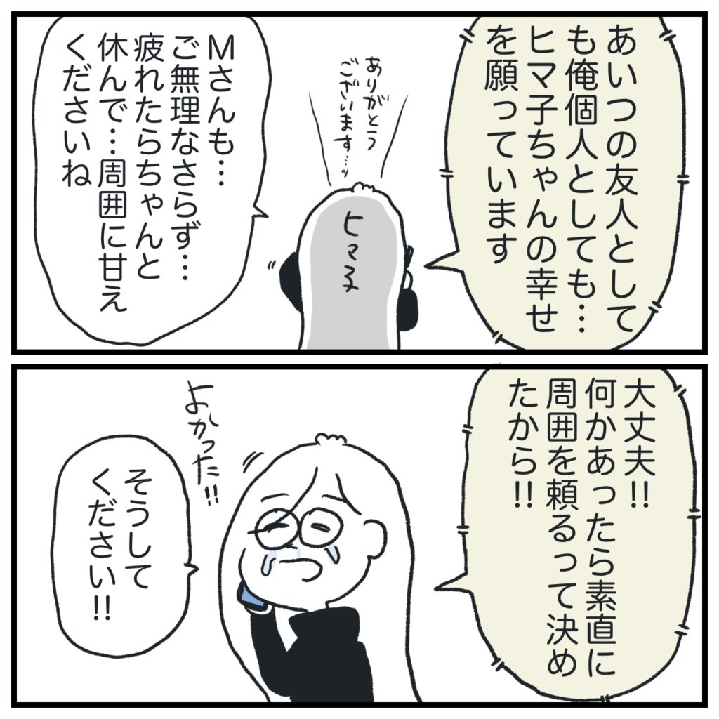 Mさんとももう連絡とるのはやめようとなりました。Mさんは最後、私の幸せを願ってくださったよ。