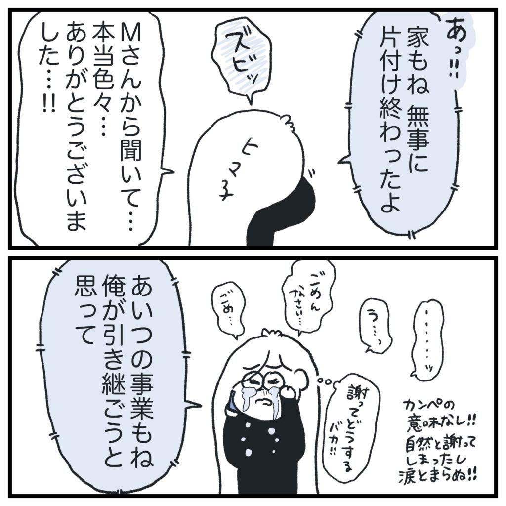 謝っても意味ないし、彼パパにも気を遣わせるし、謝ってはいけないって思ってたんだけど、自然とさ〜止まらなくてもうほんと。ぴえ〜ん。