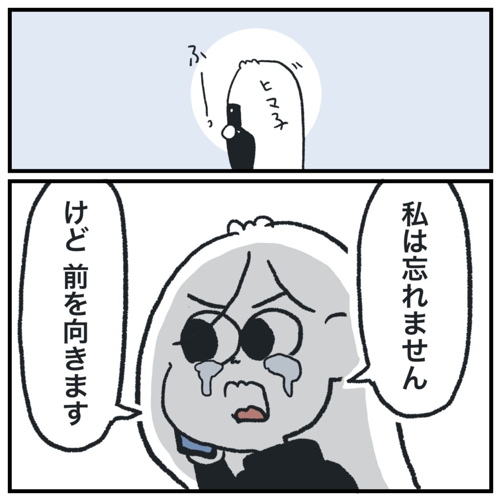 私は忘れないけど前を向きますと、伝えられたのはよかったな。