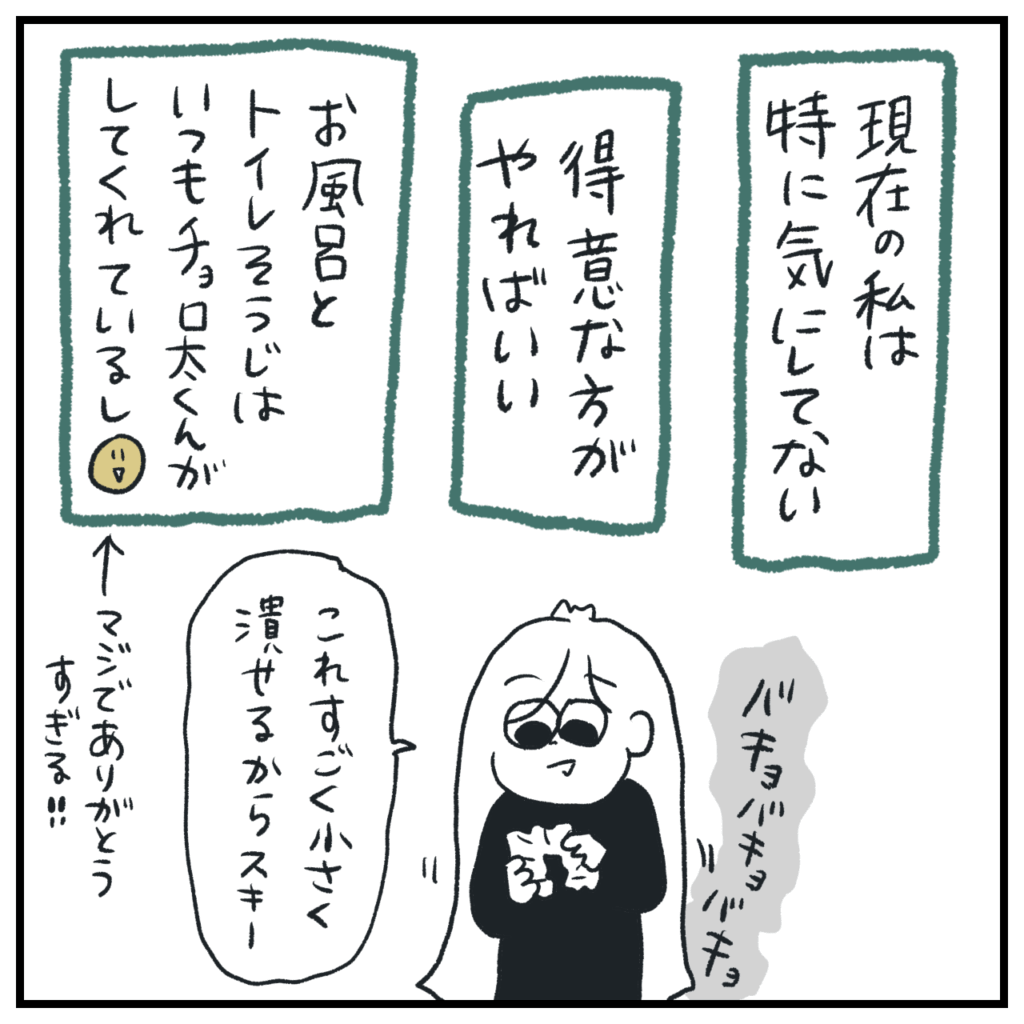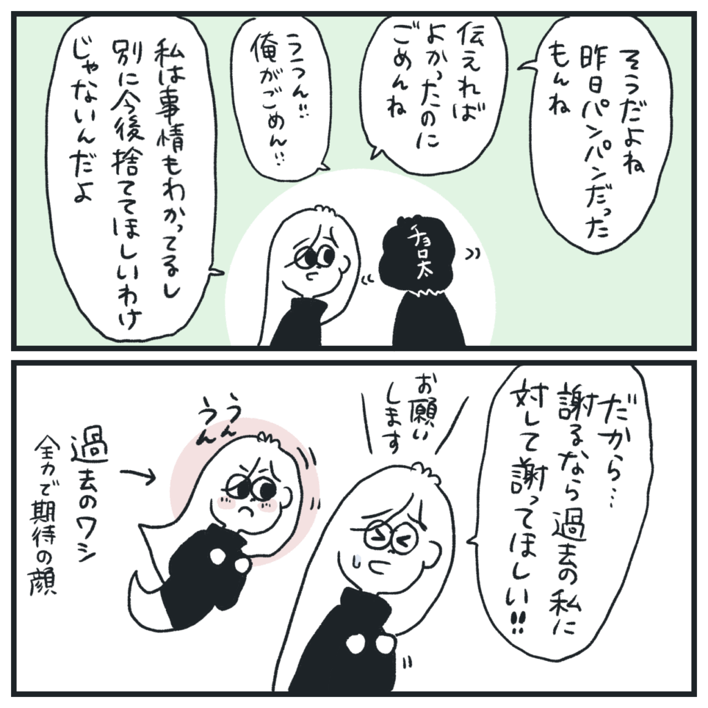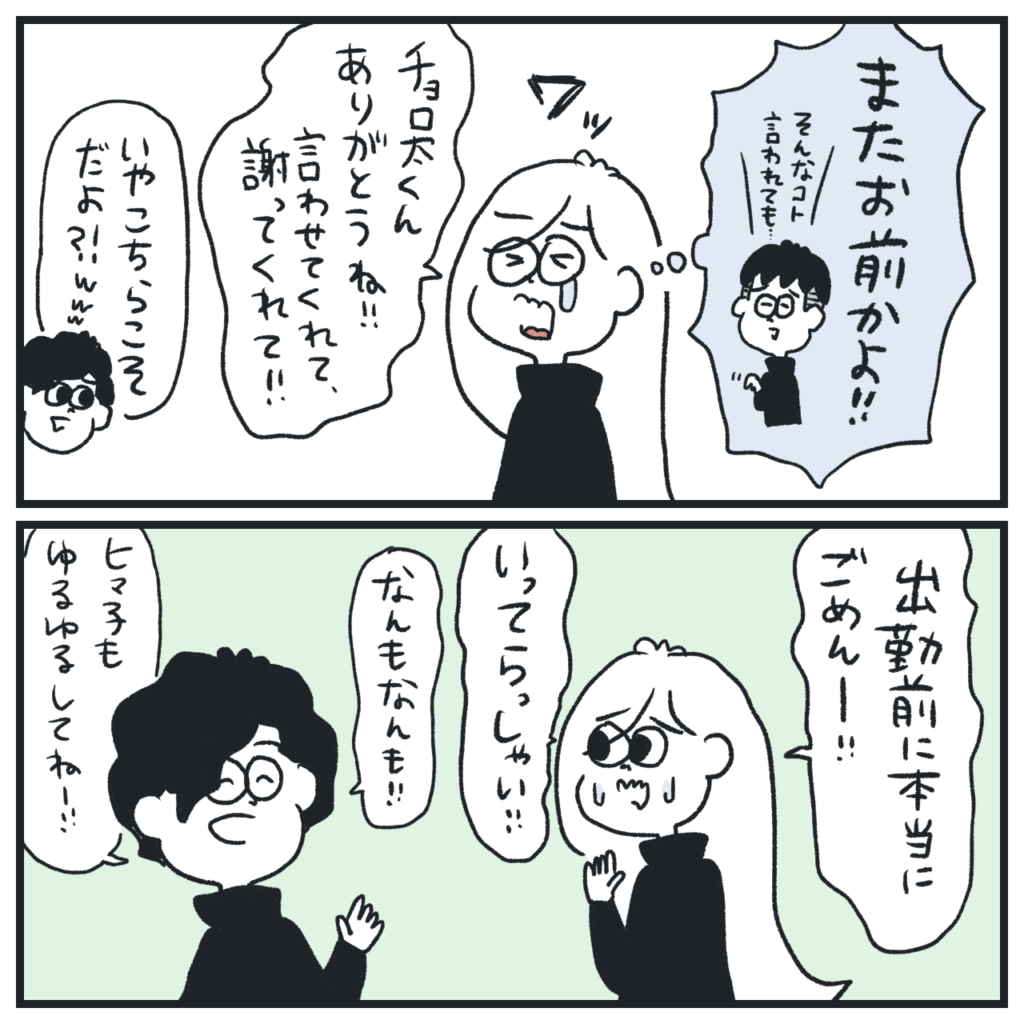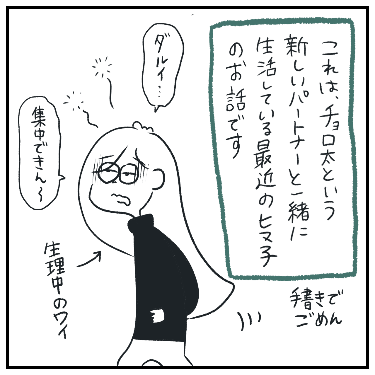 私はチョロ太くんから垣間見えた「自分はOK、ヒマ子はNG」に過剰反応しました。毎回生理前〜中にこうなることが多いです。今回も絶賛その時期でした。チョロ太くん毎回大変です本当に…。