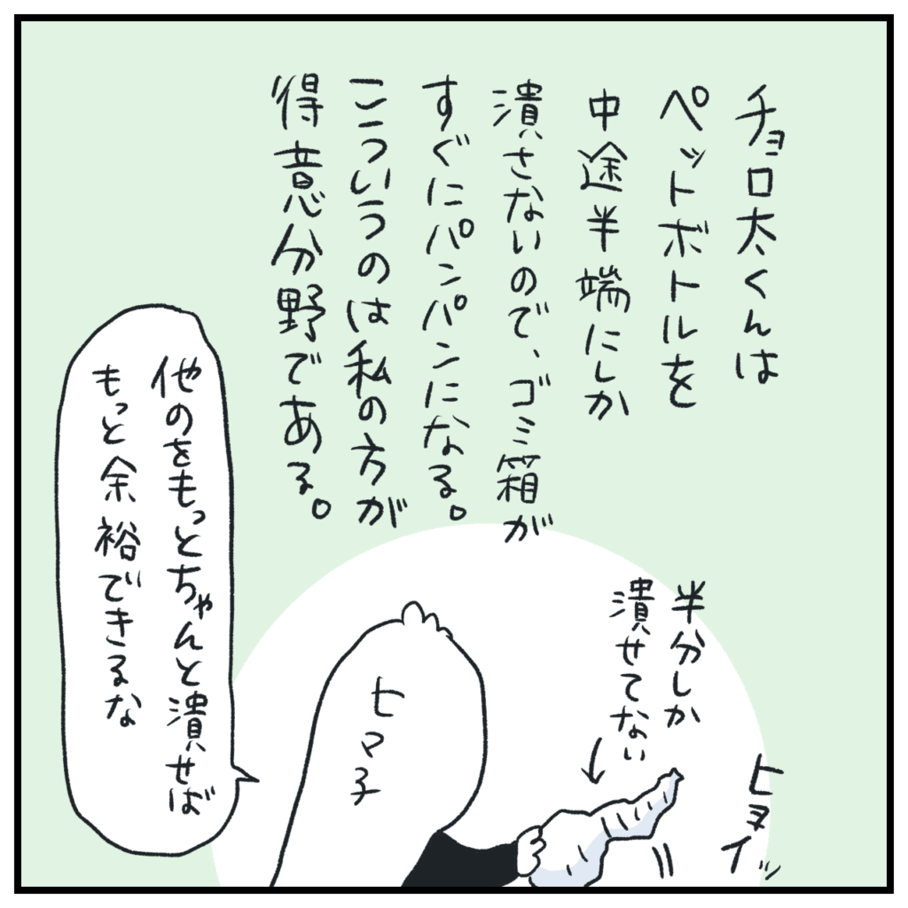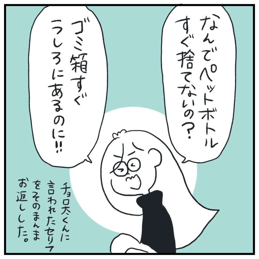 チョロ太が本質を理解してくれたかどうかはわからない。もしかしたら今後は慌ててペットボトルを捨てるようになるかもしれない。それはそれでありがとうだけどw