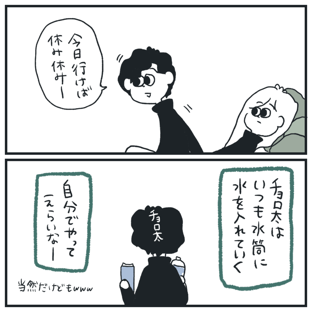 私はチョロ太の行動自体を責めたい訳ではなく、「自分はOK、ヒマ子はNG」の構図が嫌だっただけです(そう感じてしまって嫌だったってだけ)。