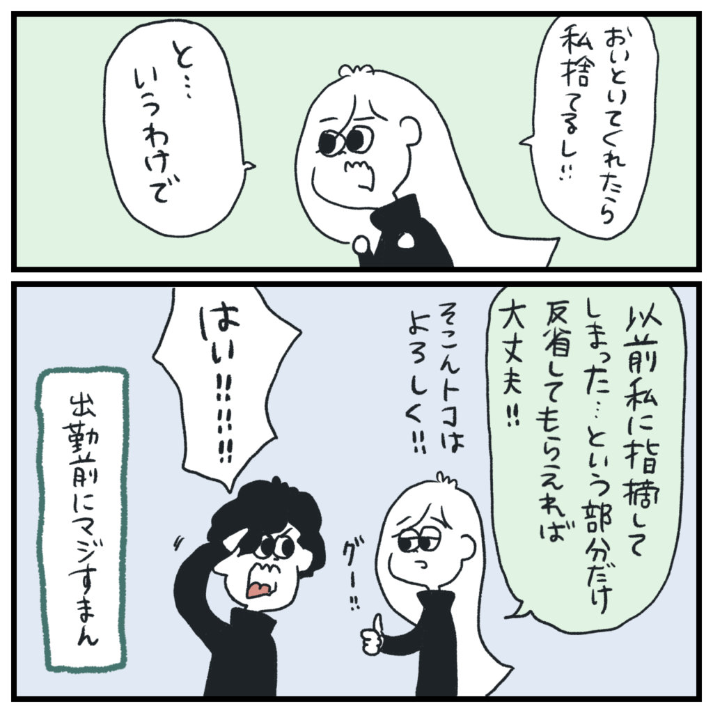 私から嫌味のような言葉を投げられて可哀想〜!と思ってしまった。謝罪しました。